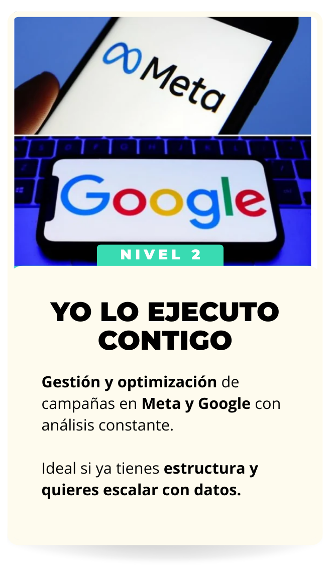 Y algo importante: Trabajo uno a uno con mis clientes. No te dejo con un asistente. Me involucro en la estrategia y en la ejecución.